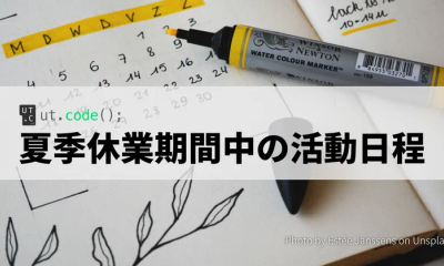 ut.code(); では、夏休み期間を利用してイベント「ut.code(); Summer Coding Camp」を実施いたします。 スケジュール 第 ...